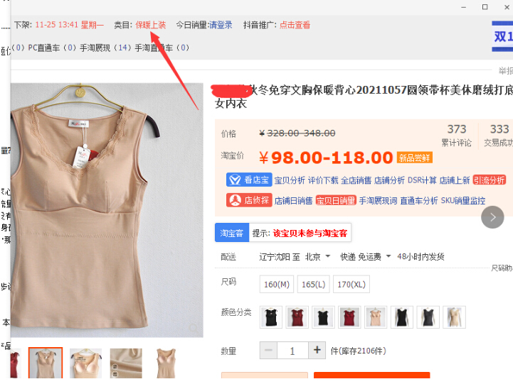 这是同一款产品两家店铺的不同上架方式,第一款的上架类目是保暖上装,第二款上架类目是 吊带/背心/T恤。像不同的类目有不同的搜索习惯,像内衣类目也是具有季节属性的商品。时值冬季,不论南北方温度都是会降低的。那保暖类的产品,在当季是热搜属性可面向全国,而T恤类的受众却少之又少。同样的产品,你因类目问题让你的目标客户搜索不到你,你只能卖天气偏暖的南方而丧失了大片寒冷地区的客户。