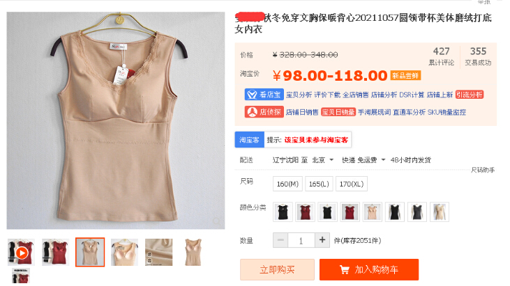 天猫托管给大家补充一点的是这是同品牌的保暖背心,类目错放大家可以自己看一下销量对比,第一款有自然搜索有权重,而第二款却什么也没有。